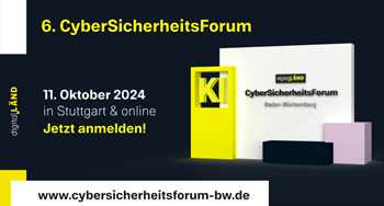 „Cybersicherheit und Künstliche Intelligenz (KI) – Chancen und Risiken“ lautet der Titel des sechsten CyberSicherheitsForums Baden-Württemberg. Am 11. Oktober 2024 können Sie vor Ort in Stuttgart oder online dabei sein.