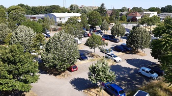 Auf Betriebsgeländen,Schulhöfen oder öffentlichen Plätzen müssen meist nicht alle Flächen versiegelt sein. „Je mehr Flächen begrünt sind,desto stärker ist der Kühlungseffekt. Zusätzlich nehmen unversiegelte Flächen Wasser auf,was wiederum den Pflanzen zu Gute kommt. Pkw-Stellplätze und Feuerwehrumfahrungen lassen sich mit Rasengittersteinen oder Schotterrasen gestalten. Die dort wachsenden Pflanzen verdunsten Niederschlagswasser und verbessern so das Mikroklima. Großkronige Bäume,wie Spitzahorn und Winterlinde,werfen zusätzlich flächig Schatten“,erklärt Heidemüller. Stadtbäume wirken wie „Klimaanlagen“: Sie senken an heißen Tagen die Temperaturen von Asphalt um bis zu 20 Grad Celsius und die Lufttemperatur um bis zu zwei Grad Celsius (Quelle: LUBW 2021). So entstehen angenehme Aufenthaltsplätze im Freien.
