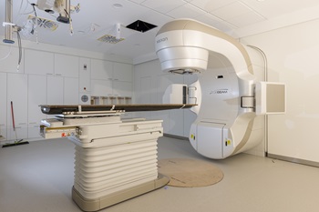 Foto (ALB FILS KLINIKUM / Max Radloff): Einer der neuen Linearbeschleuniger an seinem Platz im Neubau