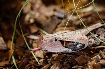 Foto (Wilhelma Stuttgart/Volker Harport): Seit Freitag,dem 13. September ist in der Wilhelma eine Westliche Gabunviper zu sehen