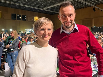 Foto: Der Bundestagskandidat der Grünen im Landkreis Göppingen,Moritz Franz-Gerstein mit der neuen Bundesvorsitzenden Franziska Brantner
