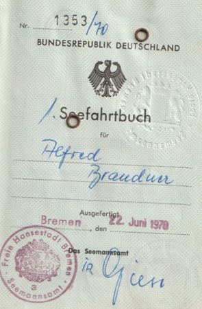 Ich machte mich auf den Weg nach Bremen,um ein Schiff zu finden,mit dem ich als Crewmitglied in die Ferne segeln konnte. Es war jedoch nicht so einfach,da Qualifizierungen notwendig waren. Nachdem ich diesen Sachverhalt erkannt hatte,begann ich einen Ausbildungskurs an der ÖTV Seefahrtsschule in Bremen.