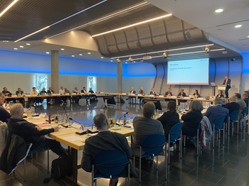 Bildunterschrift: Am Montag tagte zum ersten Mal die neue Vollversammlung der Handwerkskammer Region Stuttgart. Kammerpräsident Rainer Reichhold sprach über wichtige Zukunftsthemen wie den Ausbau der Bildungsakademie,Wege der Fachkräftegewinnung und Forderungen an die Politik. Foto: Handwerkskammer Region Stuttgart