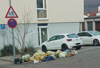 Um das Stadtbild zu verbessern und Ungezieferbefall vorzubeugen,hat der Geislinger Bauhof diese Säcke eingesammelt,dokumentiert und ordnungsgemäß entsorgt. Insgesamt kamen bei der Premierenabfuhr zehn LKW-Ladungen zusammen.