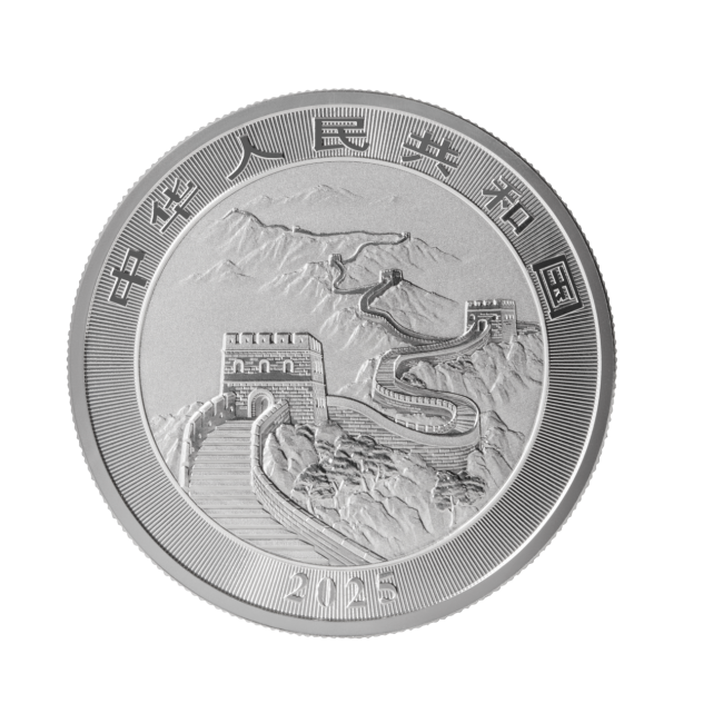 Die 2025er chinesische Drachen-Silber-Anlagemünze ist von Bullion-Qualität und enthält 31,104 Gramm Feinsilber, hat einen Durchmesser von 38 mm, einen Nennwert von 10 Yuan, eine Feinheit von 99,9 % und eine maximale Auflage von 2.000.000 Stück. Die Vorderseite der Münze zeigt die chinesische Große Mauer aus der Vogelperspektive, den Titel der VR China und das Jahr. Die Rückseite zeigt ein Bild eines chinesischen Drachen mit Mustern von glückverheißenden Wolken im Hintergrund, was eine besonders lebendige Szene schafft.