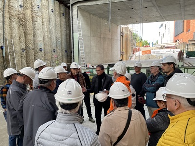 Baugrubensicherung ausgeführt? Wie werden die verschiedenen Betonblöcke wasserdicht miteinander verbunden? Wurde auch an die Leerrohre innerhalb des Gehwegs gedacht und wie schafft man es,einen 1200 Tonnen schweren Betonklotz 19 Meter waagerecht zu verschieben? Diese und noch viele weitere Fragen konnten beantwortet werden und zeigten eindrucksvoll die Komplexität des Bauwerks,das hier direkt in der Eislinger Mitte entsteht. Tiefbauamtsleiter Martin Fischer und Tobias Clement des Ingenieurbüros BNP lobten die Deutsche Bahn und die Göppinger Baufirma Leonhard Weiss,denn die Baustelle liegt voll im Zeitplan und wird wohl auch termingerecht Mitte 2026 fertig.