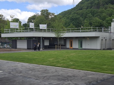 Der Neubau des Sanitärgebäudes war der letzte große Baustein der umfassenden Sanierung des Freibads. Nachdem das vorherige Gebäude stark sanierungsbedürftig und hygienisch nicht mehr tragbar war,hatte man ab 2010 auf Container-Provisorien zurückgegriffen. Mit dem Rückbau dieser Container und dem Neubau des Sanitärtrakts wurde nun ein dauerhaft hochwertiger Zustand geschaffen.