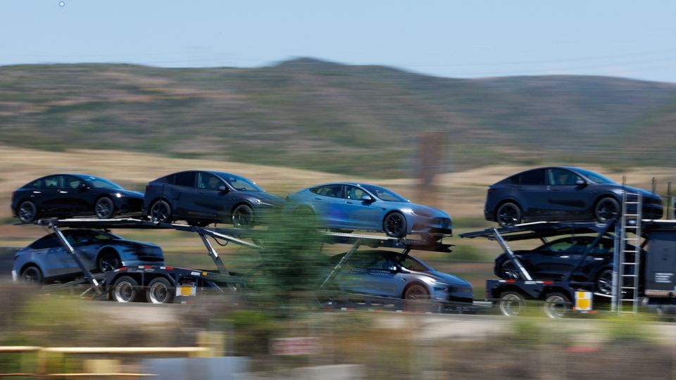 Tesla-Fahrzeuge beim Transport in Kalifornien