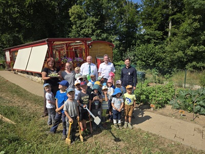 „Die Kinder lernen,woher unser Essen kommt. Von der Beetbereitung,über das Säen und Pflanzen bis hin zur Pflege und letztendlich der Ernte und der Verarbeitung der verschiedenen Gemüsesorten sind die Kinder immer mittendrin dabei und wissen,woher ihr Essen auf die Teller kommt“,sagt Hermann Färber MdB begeistert.