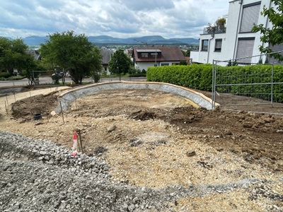 Die ausführende Firma war sehr gut im Zeitplan – fast schon schneller als erwartet. Lieferengpässe bei Spielgeräten und den Treppenstufen lassen die geplante Fertigstellung im September jetzt aber nicht mehr zu.
