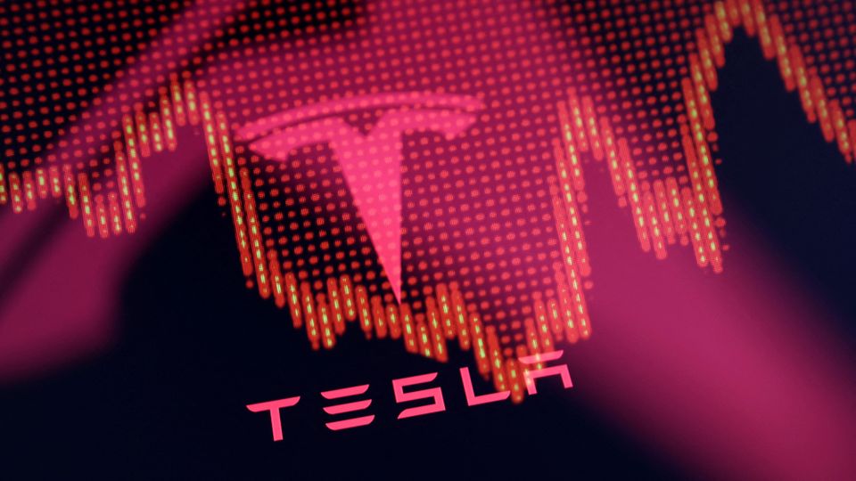 Tesla-Logo und ein einbrechender Kurs: Miese Zahlen für Elon Musk