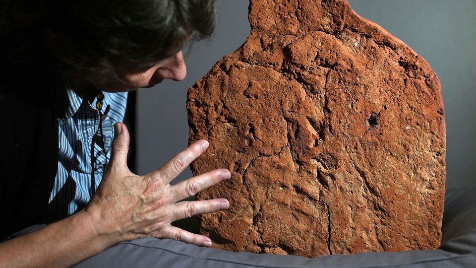 Ägyptologin Helen Strudwick mit »Seelenhaus« aus dem Alten Ägypten: Die Umrisse der Hand sind unten links schemenhaft zu erkennen