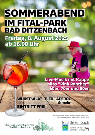 Der Obst- und Gartenbauverein Bad Ditzenbach e.V. lädt herzlich ein zu einem stimmungsvollen Sommerabend im neuen FiTal-Park am Freitag,den 8. August 2025.