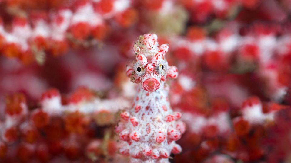 Man muss schon genau hinschauen,um die Zwerg-Seepferdchen zu enttarnen: zum einen,weil sie sehr klein sind. Zum anderen,weil sie den Korallen,in denen sie leben,zum Verwechseln ähnlich sehen.