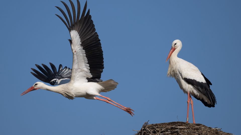 Störche im Nest: Auf und davon