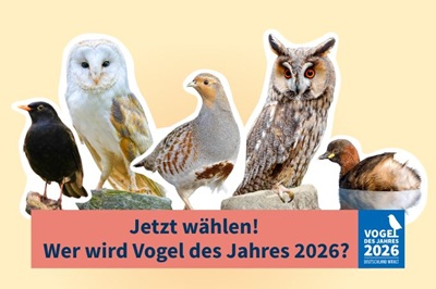 Die Amsel (Turdus merula) ist einer der bekanntesten Singvögel. Ihr melodisch-melancholischer Gesang ist weithin zu hören,wenn sie abends in einem hohen Baum oder auf dem Dachfirst singt. Damit es ihr gut geht,braucht sie naturnahe Gärten mit heimischen Sträuchern als Rückzugsort und Futterquelle. Städtische Grünflächen sollten extensiv gepflegt werden und überhaupt mehr Grün in die Städte gebracht werden. Der Wahlslogan der Amsel lautet darum: „Beeren statt Beton!“ Sie ist derzeit nicht gefährdet. In den vergangenen Jahren machte ihr aber immer wieder das tödliche Usutu-Virus zu schaffen,das sich in heißen Sommern unter der Amselpopulation ausbreitet.Das Rebhuhn (Perdix perdix) ist ein in Baden-Württemberg besonders stark gefährdeter Kandidat – deshalb setzt sich der NABU Baden-Württemberg mit einem eigenen Projekt für die Rückkehr ein. Um 1990 brach der Bestand des Bodenbrüters stark ein. Da der Hühnervogel auf Wiesen,Feldern und Brachflächen lebt,ist er von der intensiven Landwirtschaft betroffen. Er leidet unter großflächigen Monokulturen,wo es ihm an Verstecken und Futter mangelt. Mit dem Slogan „Für Felder voller Leben!“ fordert das Rebhuhn eine naturverträgliche Landwirtschaft: mehr ökologischen Anbau und weniger Ackergift. 1991 war das Rebhuhn schon einmal Vogel des Jahres.Die Schleiereule (Tyto alba) wohnt häufig in Kirchtürmen und alten Scheunen. Doch durch Sanierungen und Vergitterungen von Einfluglöchern findet sie immer weniger Brutplätze. Nur 500 bis 1.500 Paare brüten im Südwesten. „Gib mir dein Dach!“,ist darum ihr Slogan. Helfen kann man ihr durch spezielle Nistkästen,die sie gern annimmt. Viele NABU-Gruppen im Südwesten unterstützen sie damit. Die nächtliche Jägerin mit ihrem auffälligen weißen Herzgesicht wird auch durch die intensive Landnutzung bedroht,bei der häufig Rodentizide,die Mäuse dezimieren sollen,eingesetzt werden. Wühl- und Spitzmäuse sind die Hauptnahrung der Schleiereule.Die Waldohreule (Asio otus) brütet in weiten Teilen Baden-Württembergs mit etwa 3.000 Paaren. Sie sieht aus wie ein kleinerer,schlankerer Uhu. Ihre auffälligen „Ohren“ sind keine,sondern Federpuschel ohne Hörfunktion. Die Wahlohreule lebt gern in lichten Wäldern,jagt in strukturreichen Landschaften Wühl- und Spitzmäuse – so wie die Schleiereule. Sie baut häufig nicht selbst ein Nest,sondern brütet in verlassenen Krähen- oder Greifvogelnestern. Und sie braucht alte Bäume,etwa im Wald,Park oder auf dem Friedhof. Bei der nächtlichen Jagd fliegt sie wie alle Eulenarten lautlos und ortet ihre Beute akustisch. Ihr Wahlslogan lautet: „Ohren auf,Vielfalt an!“Der Zwergtaucher (Tachybaptus ruficollis) ist unser kleinster heimischer Taucher. Er ist so zart,dass man ihn auf den ersten Blick für ein Entenküken halten könnte. Er braucht natürliche,saubere Gewässer. „Tauchen statt Trockenlegen!“ ist darum sein Wahlslogan. Der scheue Zwergtaucher baut sein Nest meist schwimmend in der Uferzone,wo er zwischen Schilf und anderen Pflanzen gut versteckt ist. Zu Gesicht bekommt man ihn nur schwer,hören kann man ihn dagegen gut. An ungestörten Flussufern im Land erklingt sein auffälliger Balztriller „bibibibibibibibi“.Wichtige Fakten zur Wahl „Vogel des Jahres 2026“:Am 2. September um 10 Uhr öffnet das virtuelle Wahllokal unter www.vogeldesjahres.de. Bis 9. Oktober,11 Uhr,kann abgestimmt werden und am selben Tag verkünden NABU und LBV den Sieger. Der „Vogel des Jahres“ wurde in Deutschland erstmals im Jahr 1971 gekürt. Seit 2021 wird er durch eine öffentliche Wahl bestimmt. Der aktuelle Vogel des Jahres ist der Hausrotschwanz.Mehr Infos und Stimmabgabe: www.vogeldesjahres.deZusatzinfo: Vögel in Deutschland: 314 NABU-Kurzporträts: Wie viele Blaukehlchen brüten in Deutschland,wie balzen Kraniche und wie sehen eigentlich Kampfläufer aus? Vogelporträts mit spannenden Zahlen,Informationen und Bilder der heimischen Vogelwelt.Seit mehr als 125 Jahren begeistert der NABU Menschen dafür,sich für den Schutz unserer Natur einzusetzen. Ihre Unterstützung ermöglicht es uns,das weiterhin zu tun. Erfahren Sie in unserem Newsletter mehr über unsere Arbeit: www.NABU-BW.de/newsletterPM NABU (Naturschutzbund Deutschland),Landesverband Baden-Württemberg e. V.