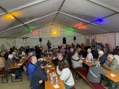 Ein voller Erfolg mit ausgelassener Stimmung: Das gemeinsame Herbstfest der vier Weiler Vereine Liederkranz Weiler o. H.,Schneelaufverein Geislingen,Bauwagen Weiler o. H. und Landfrauen Weiler o. H. am 27. September 2025 im Zelt neben der Skihütte hat die Erwartungen der Veranstalter voll erfüllt. Die Besucher strömten zahlreich herbei und füllten das Festzelt bis auf den letzten Platz,um gemeinsam zu feiern,zu lachen und sich wiederzusehen.