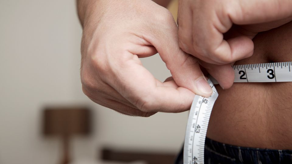 Mann misst seinen Bauchumfang: Zehn Prozent des Körpergewichts lassen sich mit Abnehmpille über 18 Monate hinweg laut Studie abnehmen