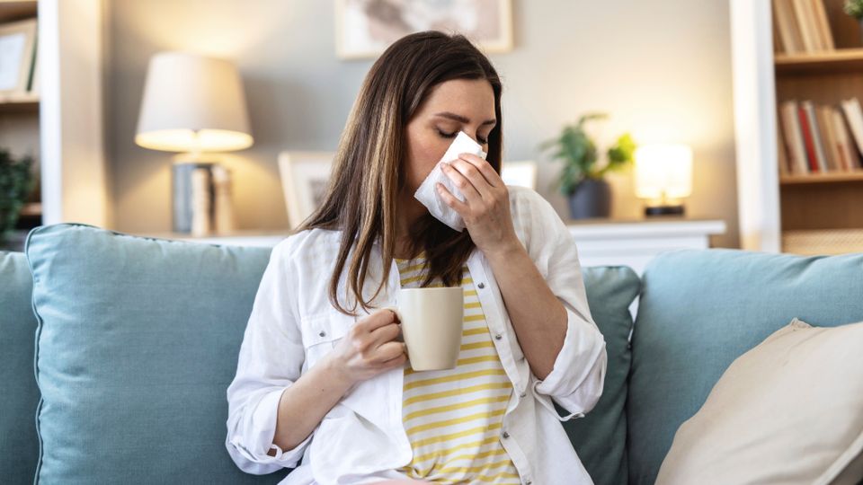 Frau mit Grippesymptomen: Menschen mit erhöhtem Ansteckungs- und Erkrankungsrisiko sollten sich impfen lassen