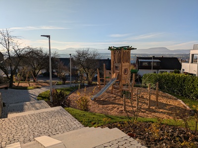 Spielen mit Blick über Eislingen – Auf dem neu gestalteten Spielplatz Sudetenstraße kann jetzt wieder gespielt werden